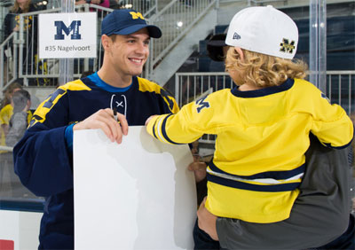 Under the motivation and leadership of senior University of Michigan goaltender and NAHL alum Zach Nagelvoort (Aberdeen/Soo/Kalamazoo/Traverse City), the University of Michigan ice hockey team is hosting a book drive that will run through the Feb. 4 home game against Ohio State. Books can be dropped off in the Yost Ice Arena lobby anytime from now through Feb. 4. Nagelvoort is a sport management major so working with local schools like Bryant and Lawton in Ann Arbor, MLKECA, and getting involved with Athletes for Community Transformation, is something he chooses to do in his spare time. "This is something I'm passionate about," Nagelvoort explained. "I'm going to play hockey as long as I can but I'm thinking of going into education when I'm done. I'm kind of figuring that out. This, I'm just realizing, is something I care about." (Story)