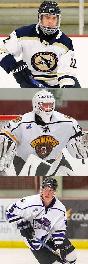A few of the star players from the opening day at the NAHL Showcase included Janesville forward Nick Gonrowski, Austin goalie Jaxon Friedman, and Lone Star defenseman Sam Brennan.