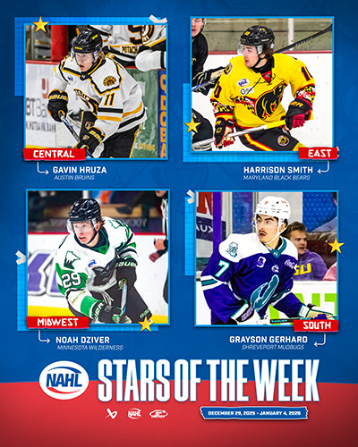The North American Hockey League (NAHL) announced today the Bauer Hockey Divisional Stars of the Week for the week ending January 4, 2026. Only players that are nominated by their respective teams are considered for the Divisional Player of the Week awards.